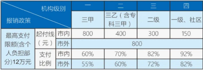 說明:參保人員年度內(nèi)多次住院按上述起付標(biāo)準(zhǔn)依次遞減100元,直至降至零為止。參保人員在縣域內(nèi)醫(yī)共體成員單位間轉(zhuǎn)院,經(jīng)轉(zhuǎn)出、轉(zhuǎn)入醫(yī)院在醫(yī)保信息系統(tǒng)中審核確認(rèn)的,取消二次住院起付線。