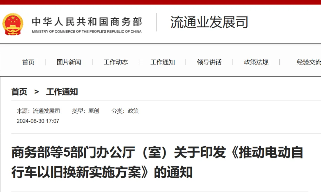 關于印發《推動電動自行車以舊換新實施方案》的通知