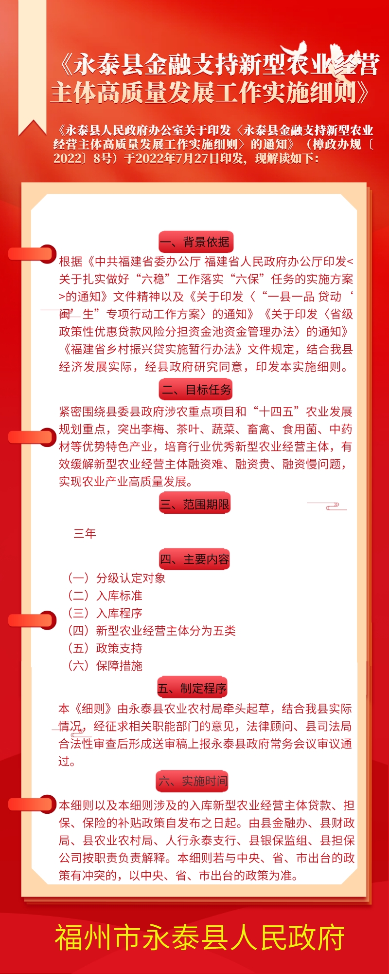 【圖解】《永泰縣金融支持新型農業經營主體高質量發展工作實施細則》政策解讀