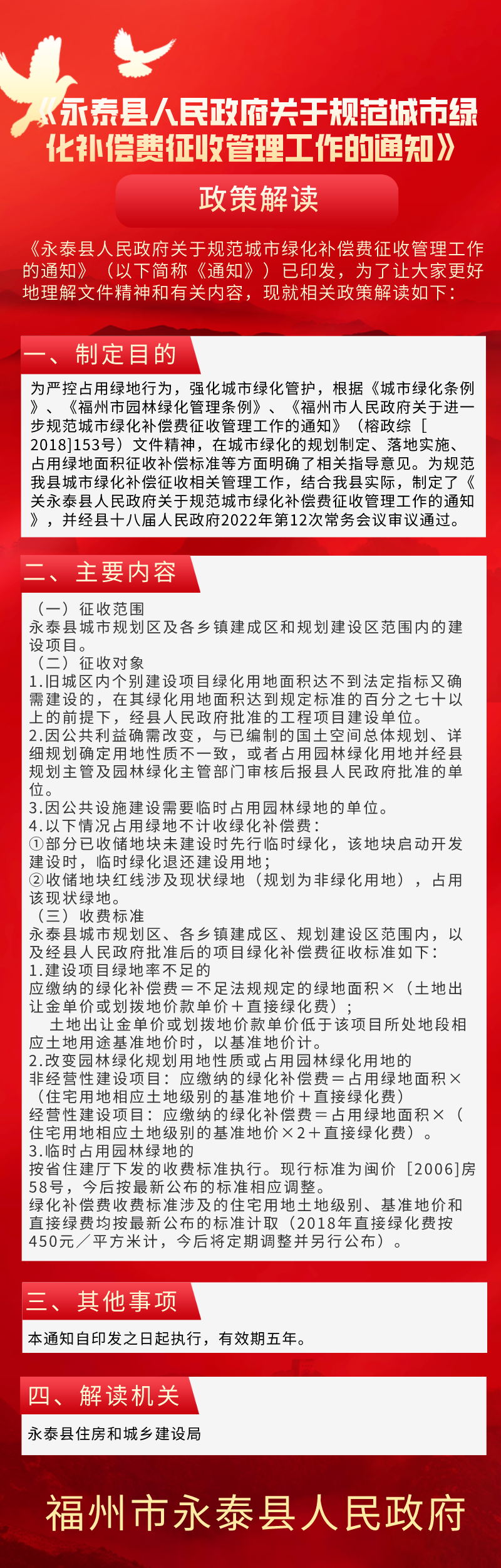 【圖解】《永泰縣人民政府關于規范城市綠化補償費征收管理工作的通知》政策解讀