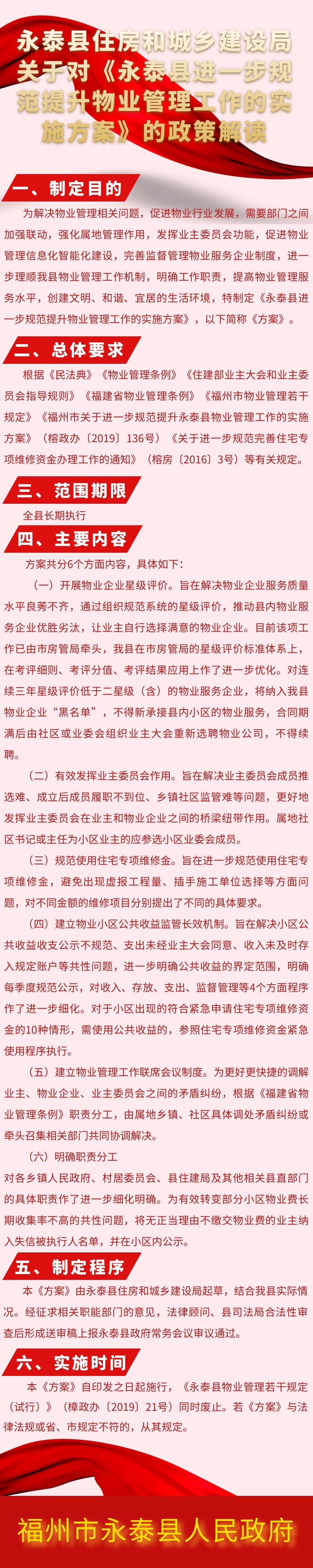 【圖解】永泰縣住房和城鄉建設局關于對 《永泰縣進一步規范提升物業管理工作的實施方案》的政策解讀