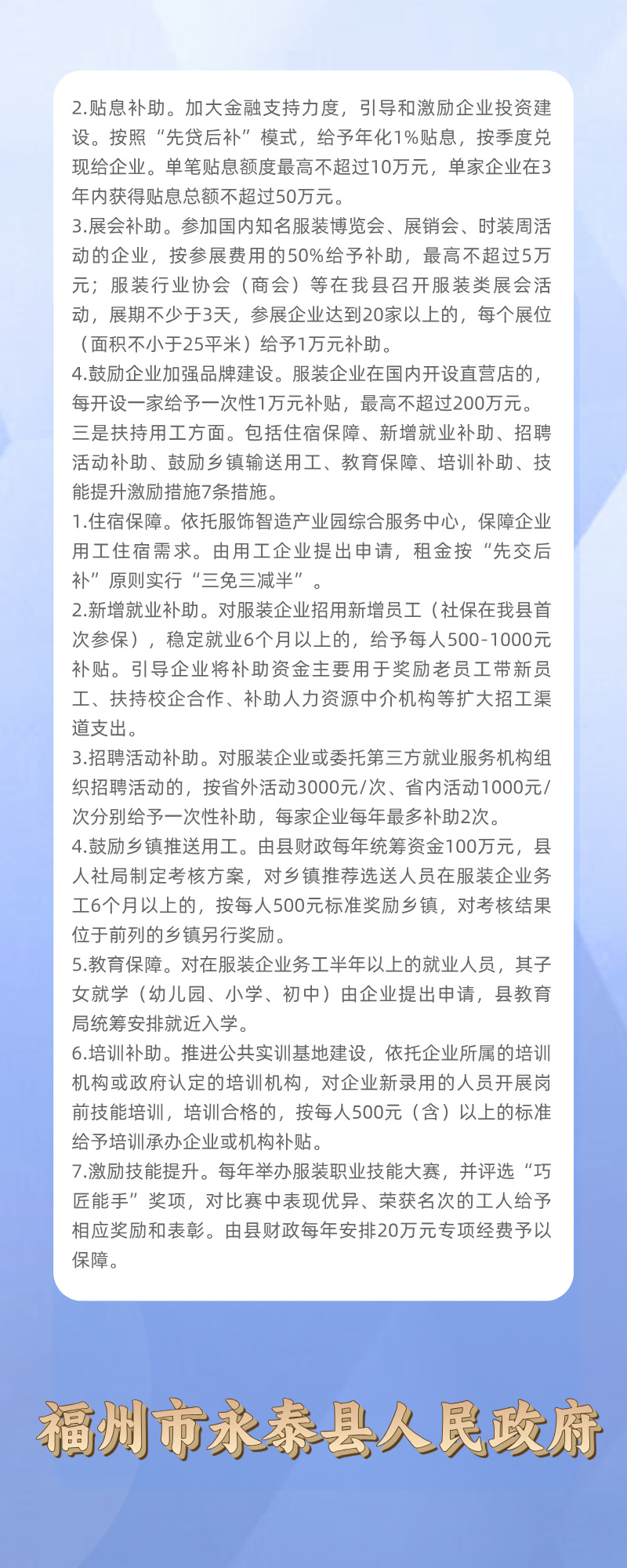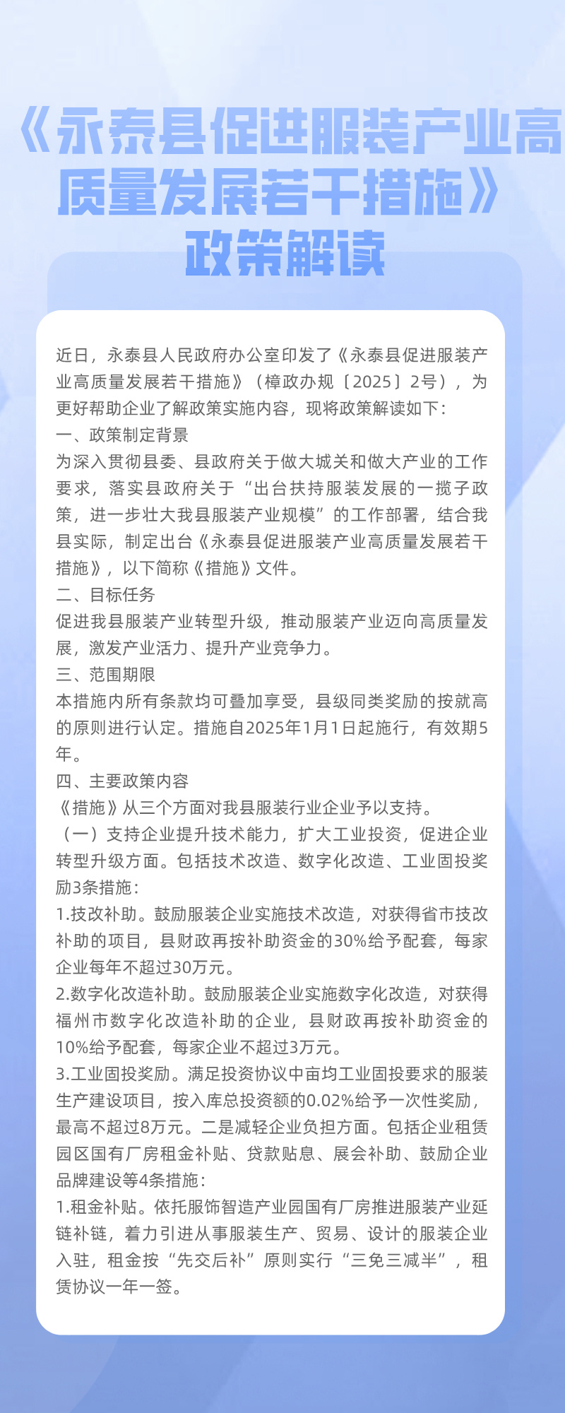 【圖解】《永泰縣促進服裝產業高質量發展 若干措施》政策解讀