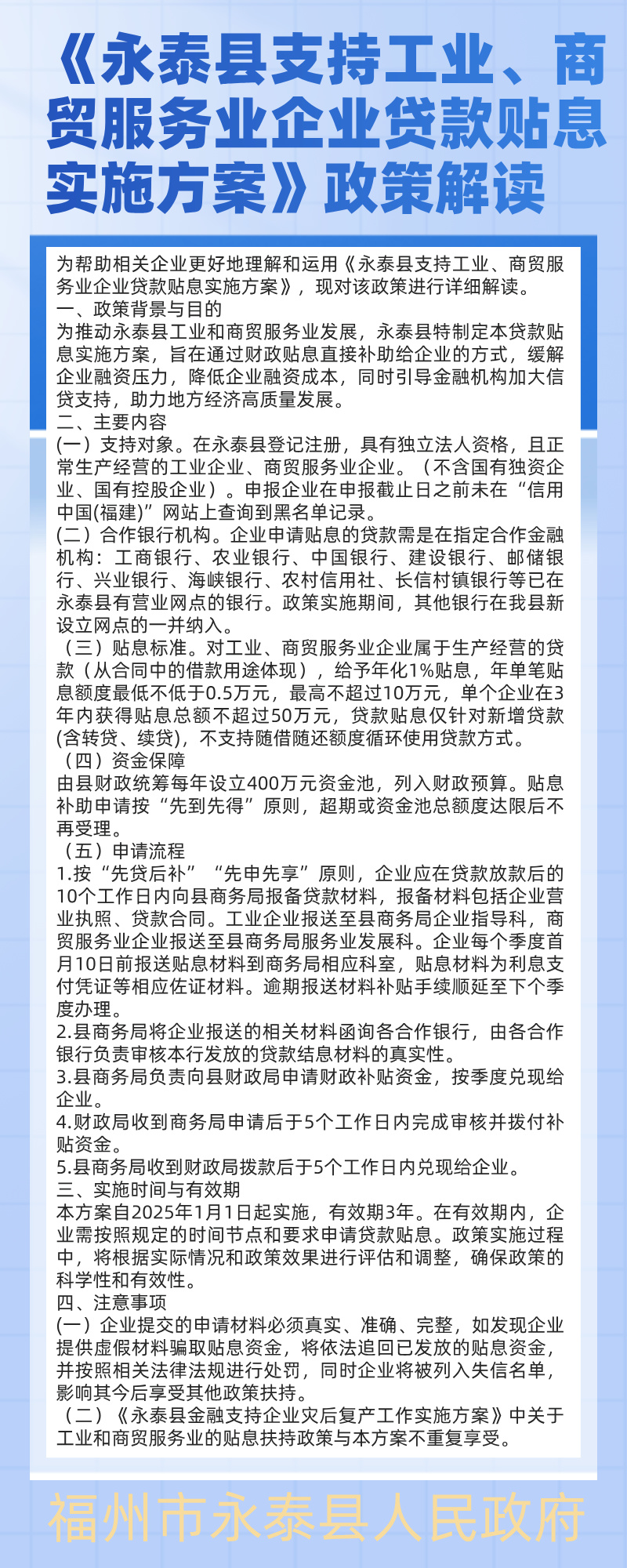 【圖解】《永泰縣支持工業、商貿服務業企業貸款貼息實施方案》政策解讀
