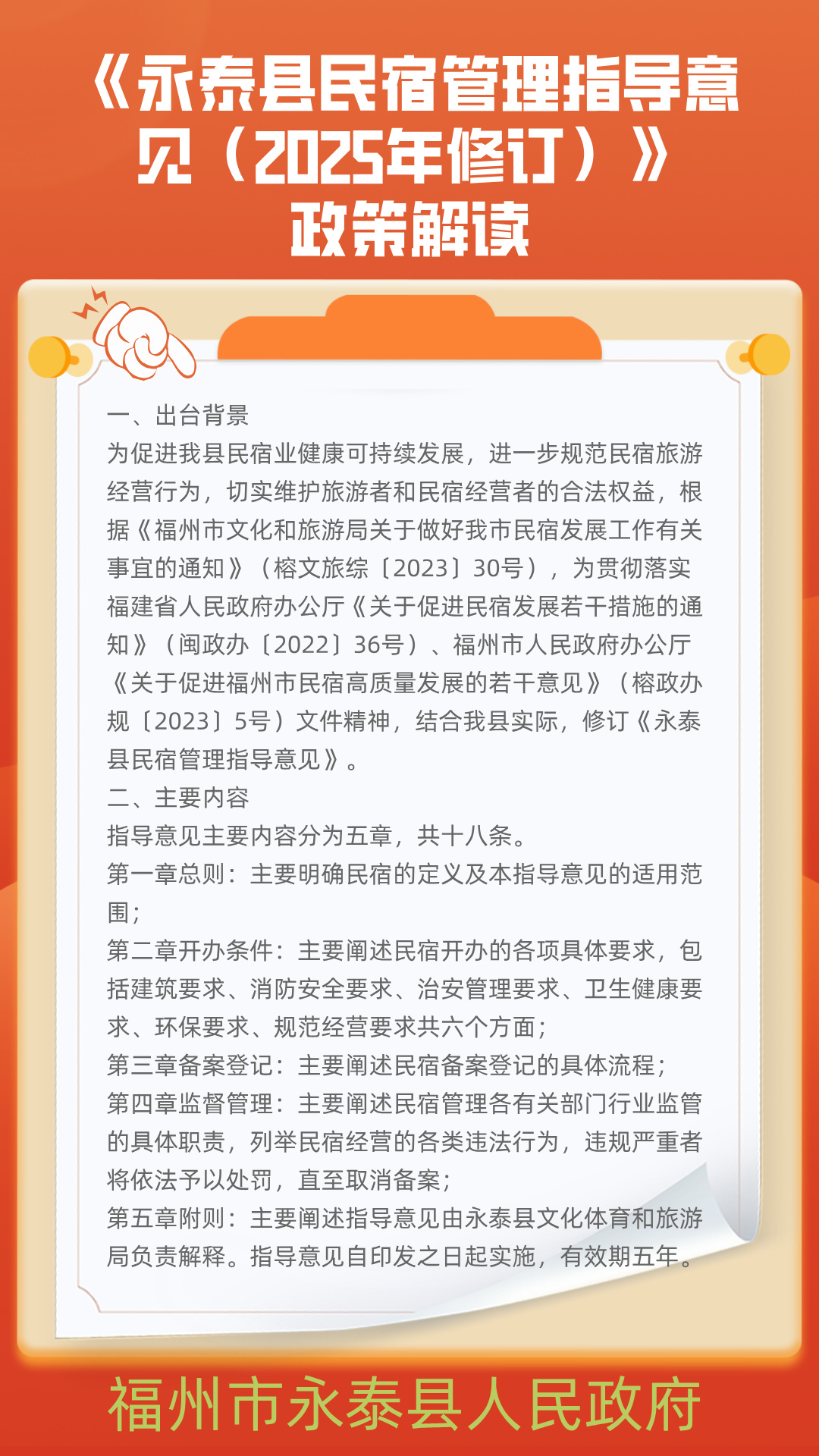 【圖解】《永泰縣民宿管理指導意見(2025年修訂)》的政策解讀
