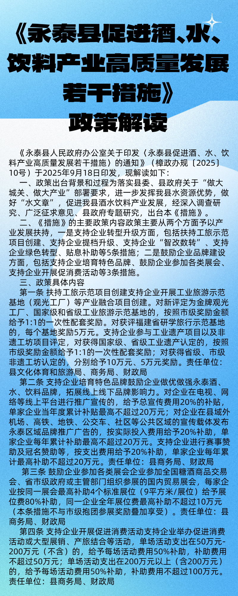 【圖解】《永泰縣促進酒、水、飲料產業高質量發展若干措施》政策解讀