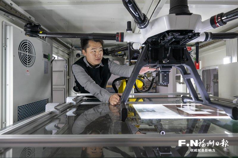 閩都創新實驗室內,有成科技工作人員調試智能無人機庫。記者 林雙偉 攝