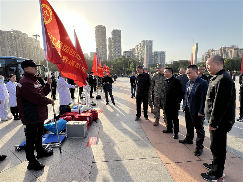 活動現場,雷發勇宣讀了《關于成立連江縣國防動員專業保障隊伍的通知》,明確隊伍組建的重大意義、核心職責和建設標準。隨后,雷發勇、喬永共同為涵蓋市政、消防、醫療、應急、海上救援、通信、網絡攻防等多個專業領域的20支專業保障隊伍授旗,鮮紅的隊旗迎風招展,映照著全體隊員挺拔的身姿和堅毅的眼神,傳遞出忠誠使命、勇擔重擔的堅定信念。授旗儀式后,領導嘉賓現場進行點驗,各專業隊隊長對隊伍人員編成、裝備配置等情況進行匯報。點驗拉動活動圓滿落幕,市國動辦領導一行蒞臨我辦,實地察看縣地面應急指揮中心的運行情況,指導我縣國防動員工作開展。