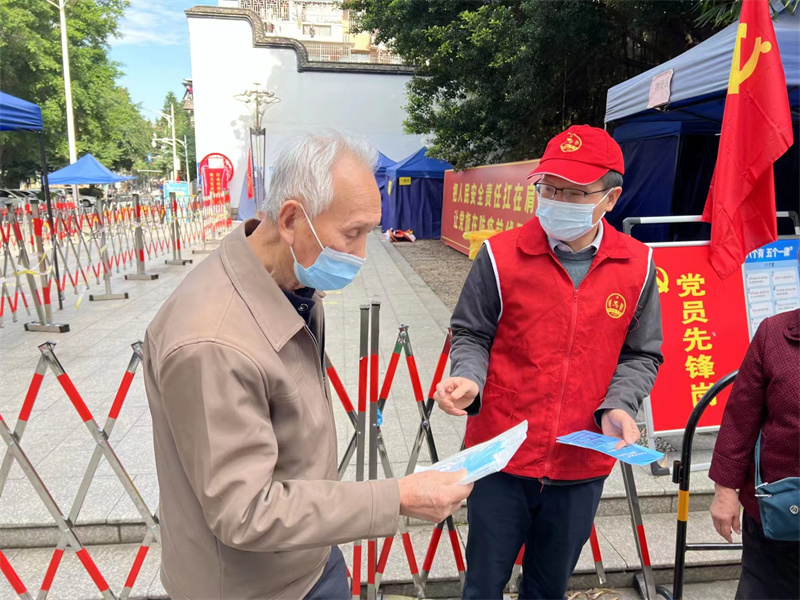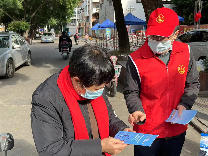 隨后,志愿者們深入下藤社區大街小巷開展文明實踐志愿服務活動,向群眾發放垃圾分類、政法小知識、法律援助知識等宣傳單,普及法律知識與垃圾分類知識,呼吁群眾要知法、守法,依法維權,要常態化開展垃圾分類,保護環境衛生,共創清潔家園;同時向社區群眾尤其是老人群體宣傳最新防疫政策,分發口罩,呼吁大家要對自己的健康負責,戴好口罩,做好自身防護。