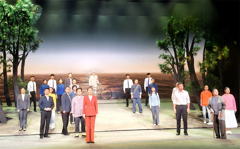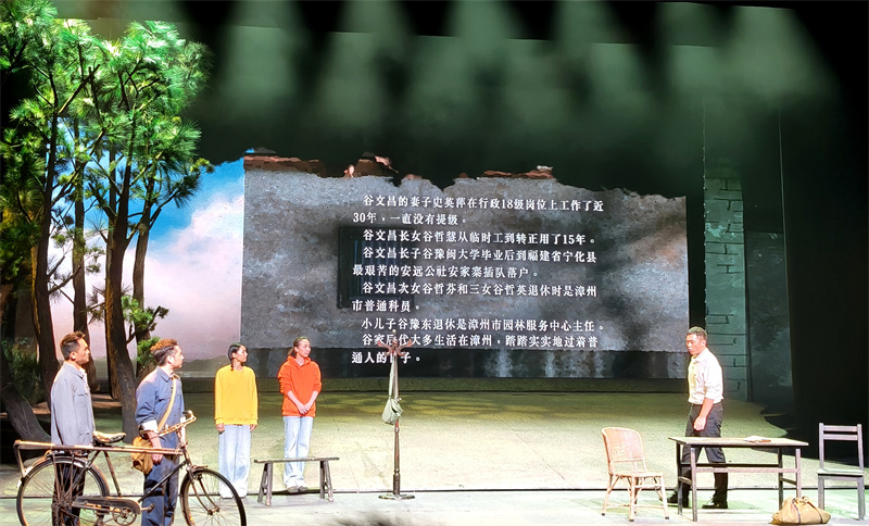 情景黨課通過沉浸式演繹,全方位展現了谷文昌同志帶領群眾植樹治沙、推行兵災政策、南門筑堤等感人至深的故事。尤其是將“敵偽家屬”改為“兵災家屬”的情節,以細膩感人的表演,體現出谷文昌一心為民的公仆情懷。舞臺上,谷文昌與“時代楷?!绷慰〔ǖ臅r空對話,展現一代代共產黨人前仆后繼“為民造?!钡某跣氖姑?,讓現場黨員干部深受觸動。