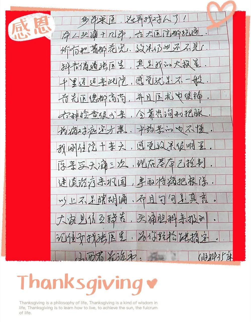對于楊先生,張偉印象深刻,對這首打油詩也十分喜歡:“這是患者對我的肯定和信任,絕非任何物質獎勵可比擬。”