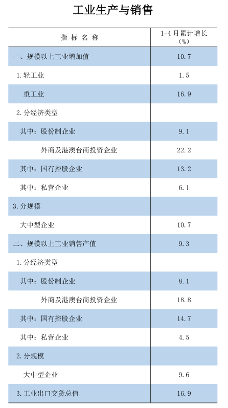 2024年1-4月工業(yè)生產(chǎn)與銷售