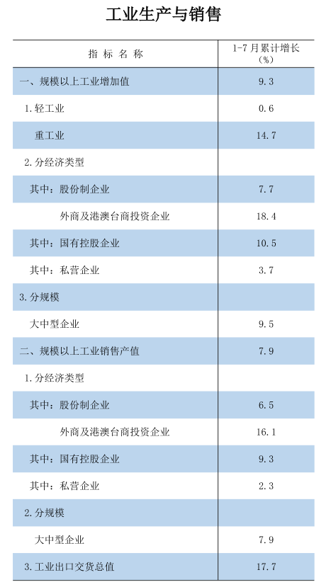 2024年1-7月工業(yè)生產(chǎn)與銷售