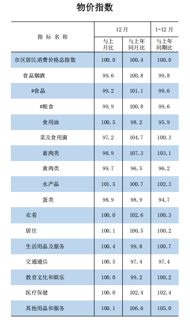 2024年1-12月物價(jià)指數(shù)