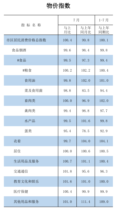 2025年1-7月物價(jià)指數(shù)