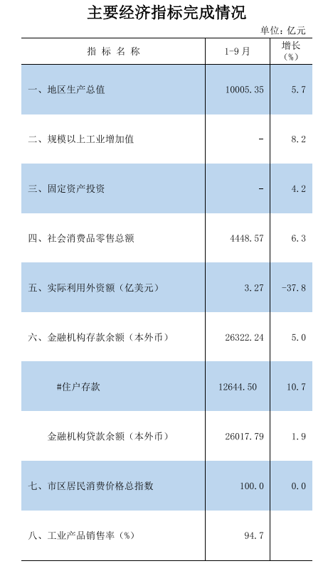 2025年1-9月主要經(jīng)濟(jì)指標(biāo)完成情況
