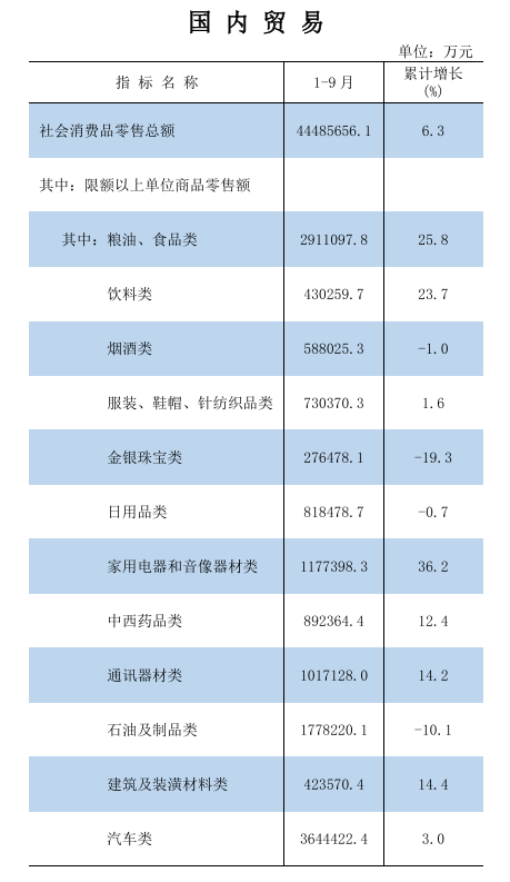 2025年1-9月國內貿易