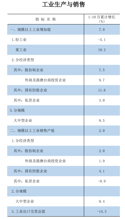 2025年1-10月工業(yè)生產(chǎn)與銷售