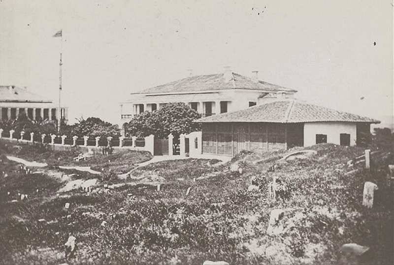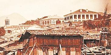 19世紀(jì)70年代的樂(lè)群樓,左為英國(guó)領(lǐng)事館。