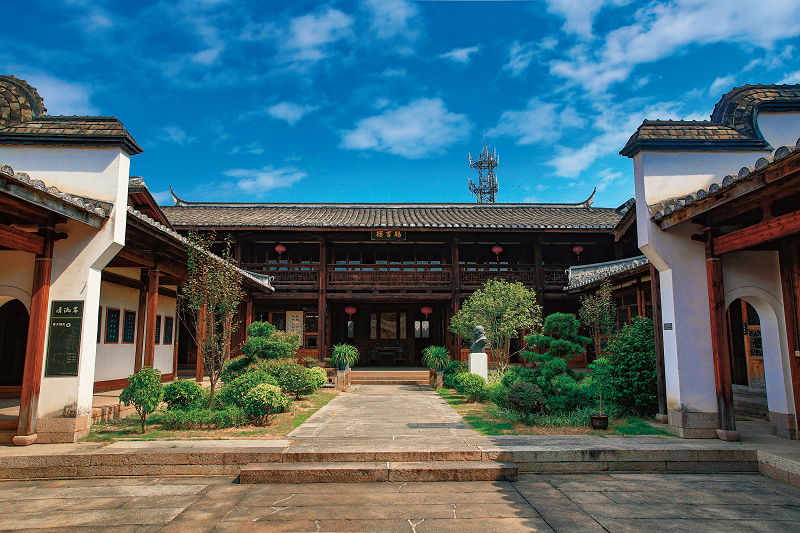 還讀樓為懸山頂雙層石木樓閣,設計奇巧,不拘常式。樓閣底層依托18根石柱做架空層以防水患,架空層左前方依墻建有寬闊木梯可登臨二層檐廊。二層閣樓正面三開間,中間廳堂兩側各有正房,堂內立屏風,做中、后堂格局,廳堂前后設平行游廊。這種垂直移用的空間營建方式,使還讀樓廳堂懸空,宛若空中樓閣,呈現出靈動飄逸的美感。