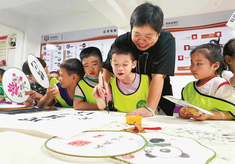 9日下午,鼓樓區鼓西街道西湖社區新時代文明實踐站舉辦了一場“同賞中秋月 共敘中國情”主題活動,邀請西峰小學的小朋友們一起畫團扇、看熊貓、吃月餅,感受中華傳統節日。本報記者 游慶輝 通訊員 陳亦馨 攝