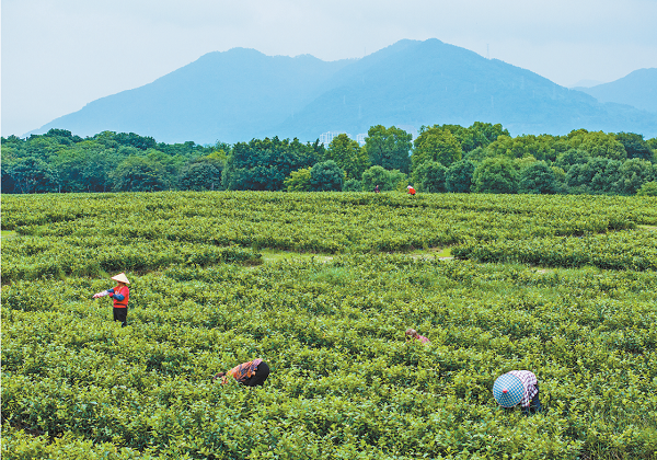 花農在侯官村茉莉花田里采摘茉莉花。記者 林雙偉攝