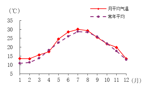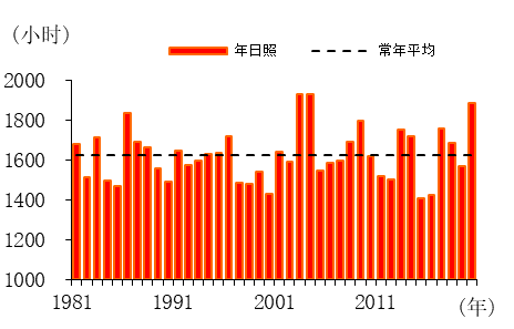 【日照時數】 2020年,福州市平均年日照時數1886.7小時,比常年平均多15.7%,屬異常偏多,是1971年以來第5多年份。從各月日照時數看,4月和6月異常偏多,2月顯著偏多,8月和10月偏多,12月偏少,其余月份正常。各縣(市)區年日照時數1509.8~2357.8小時,其中閩清、閩侯、連江和福清異常偏多,閩清、閩侯是1971年以來的最多年份,福清僅次于1971年(2357.8小時),永泰偏少,其余縣(市)區均屬正常。