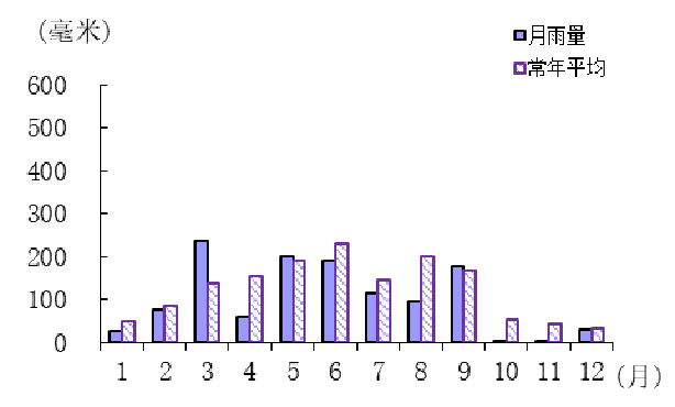 氣象干旱 2019年12月7日至2020年1月25日,全市降水偏少,統計期間各縣(市)區累積雨量8.9毫米(閩清)~38.1毫米(連江),比常年同期平均少53.9%~86.7%。至1月25日,閩清達到氣象重旱等級,羅源、閩侯、永泰、福清中旱,其余縣(市)區輕旱。1月26日全市出現中到大雨,旱情解除。7月初開始,全市降水偏少,統計7月1—24日各縣(市)區的累積雨量3.1毫米(福清)~127.8毫米(永泰),除永泰外,其余縣(市)區比常年同期平均少14.3%~96.8%。至7月24日,永泰、連江、長樂、福清達到氣象重旱等級,羅源、閩清、閩侯中旱,市區輕旱。7月25日大部分縣(市)區出現大到暴雨,閩清出現大暴雨;閩清旱情解除,其余縣(市)區旱情有所緩解。8月1—25日降雨稀少,旱情再度發展,統計各縣(市)區的累積雨量為23.0毫米(閩侯)~70.7毫米(羅源),比常年平均少61.3%~83.4%。至8月25日,連江、福清達到氣象特旱等級,市區、羅源、閩侯、長樂重旱,永泰中旱,閩清輕旱。8月26—28日,全市出現大到暴雨,局部大暴雨,旱情有所緩解。8月29日至9月7日降水稀少,旱情再度發展,統計各縣(市)區的累積雨量為0.1毫米(長樂)~24.9毫米(羅源),比常年平均少71.1%~99.9%。至9月7日,連江、長樂達到氣象重旱等級,市區、閩侯、永泰、福清中旱,羅源、閩清輕旱。9月8—11日和18—20日的兩次連續性暴雨使得旱情解除。10月以來全市降水持續偏少,統計10月1日—12月13日各縣(市)區的累積雨量6.3毫米(市區)~14.8毫米(長樂),比常年平均少86.8%~93.8%。至12月13日,市區、羅源、連江和永泰達到氣象重旱等級,閩清、閩侯、長樂中旱,福清輕旱。受降雨偏少的影響,全市有71608人出現明顯人飲困難,全市農作物受旱面積711.33公頃。12月14—18日,全市出現中到大雨,干旱明顯緩解。