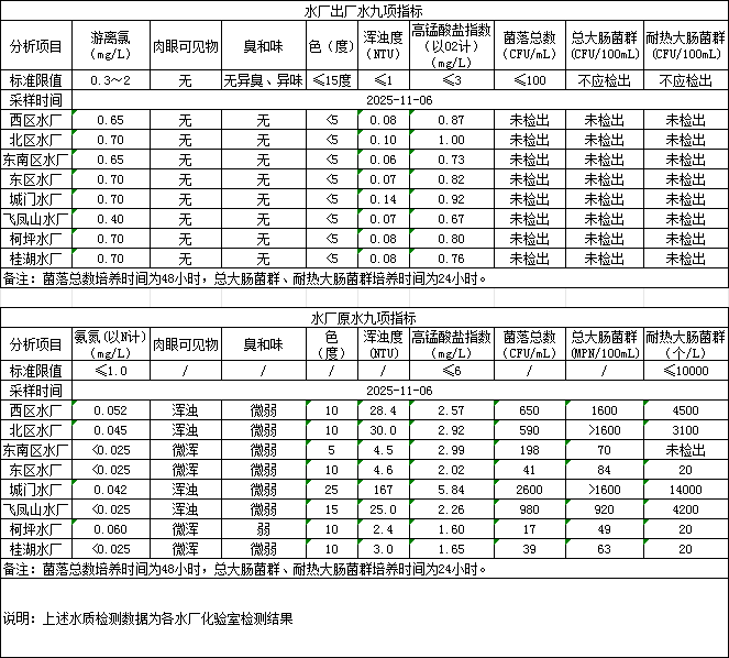 2025年11月6日供水水質(zhì)信息發(fā)布