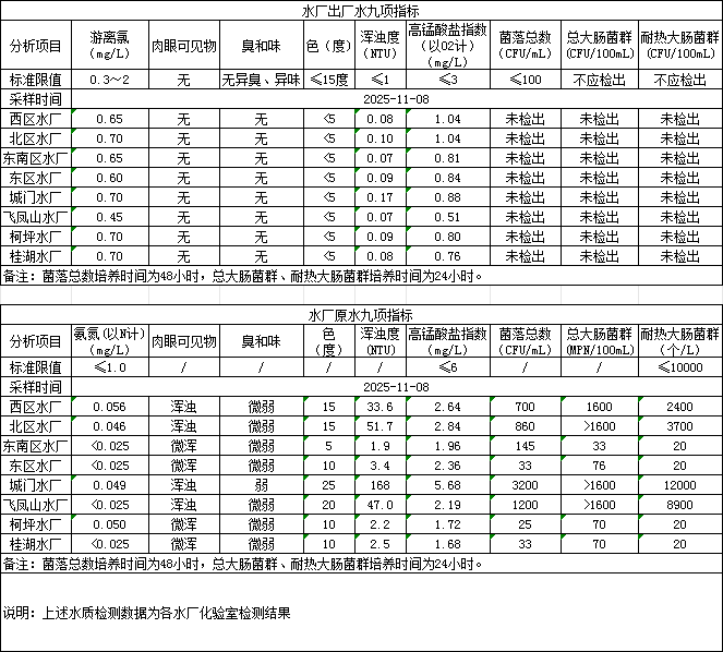 2025年11月8日供水水質信息發布