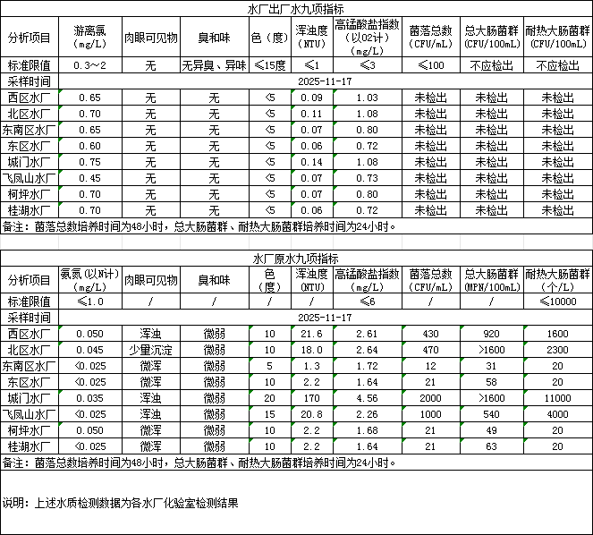 2025年11月17日供水水質信息發布
