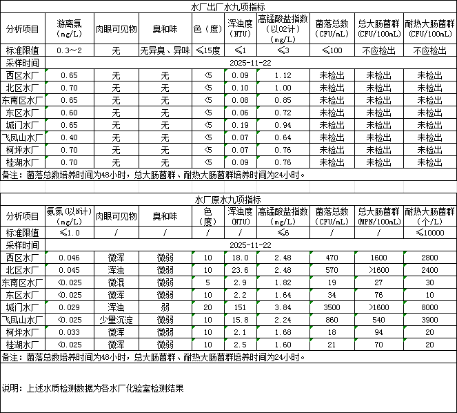 2025年11月22日供水水質(zhì)信息發(fā)布