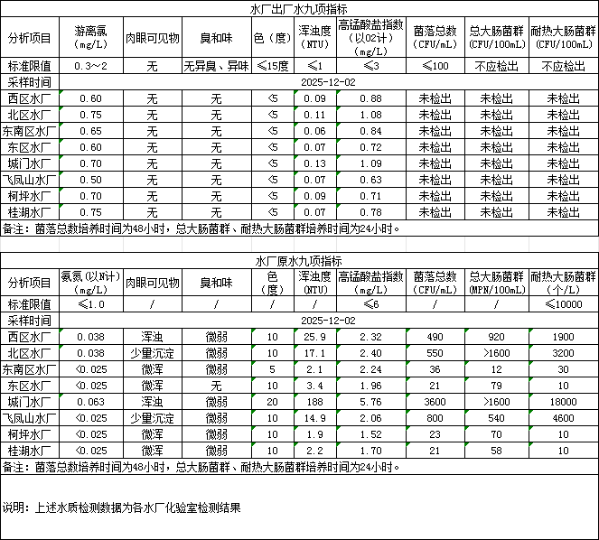 2025年12月2日供水水質(zhì)信息發(fā)布