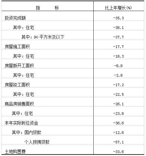 全年房地產開發企業投資比上年下降35.3%。其中,住宅投資下降38.1%。