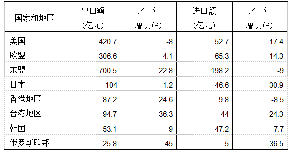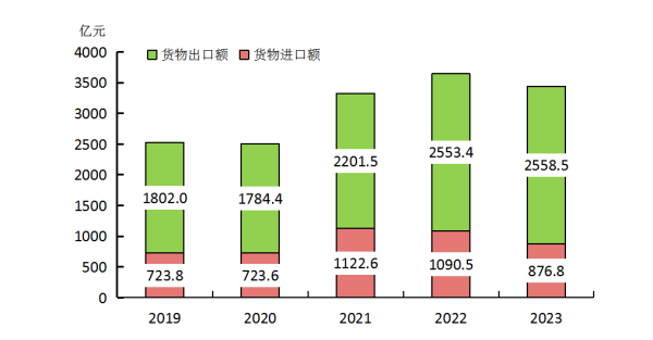 全年進出口總額3435.3億元,比上年下降5.7%。其中,出口額2558.5億元,增長0.2%;進口額876.8億元,下降19.6%。