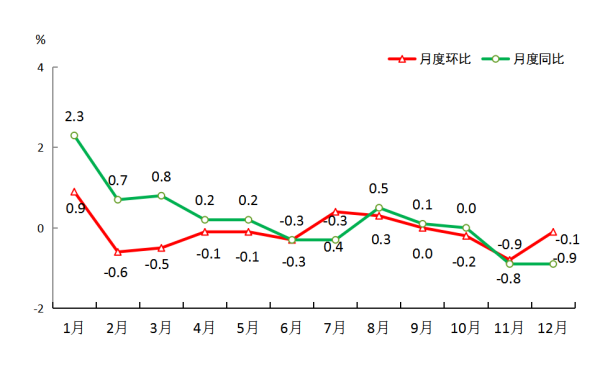 圖3 2023年市區居民消費價格月度漲跌幅度