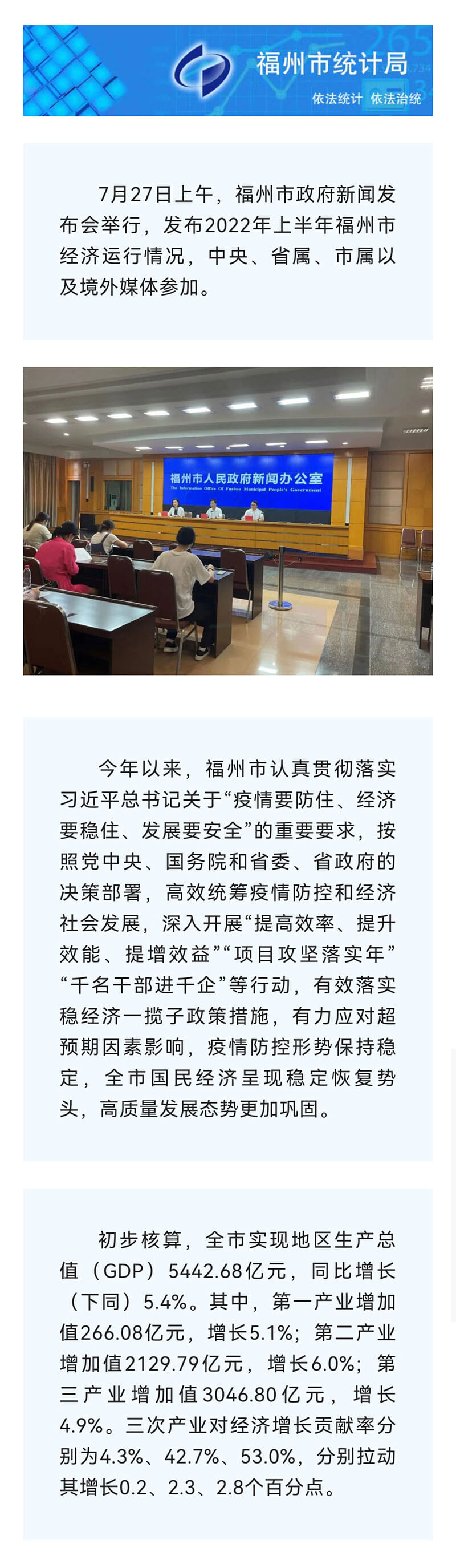 福州市政府就上半年經濟運行情況召開新聞發布會