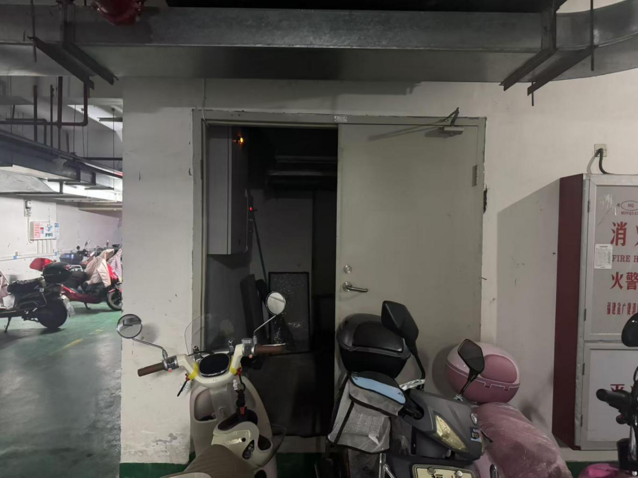 臺江區某小區:地下室電動車集中充電點未與排煙風機房分隔,防火門被拆除。
