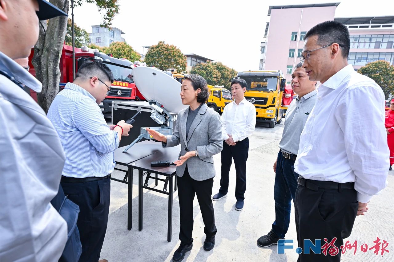 在福州市應急綜合保障基地,郭寧寧實地檢查移動泵車、沖鋒舟、水陸兩棲救援車等應急物資儲備和管理維護情況,現場開展衛星電話應急聯絡測試,強調要加快構建全市覆蓋、統籌調度的應急物資儲備庫,引入無人機、機器人等新型智能裝備,充實社會化專業化救援力量,分級分類組織培訓和實戰化演練,完善應急聯動機制和預案,切實提高防汛搶險救災能力水平。