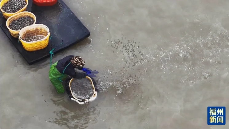 連江縣浦口鎮中麻村南面海域地處敖江入海口,在距離岸邊約2公里的海上蟶田,漁民們忙著撒下粒粒蟶苗。