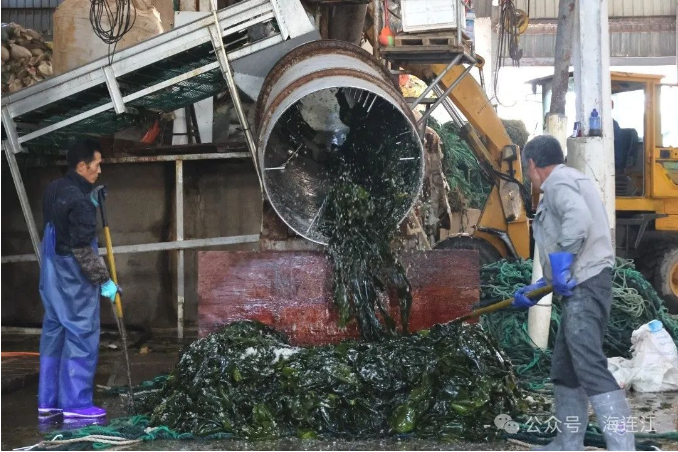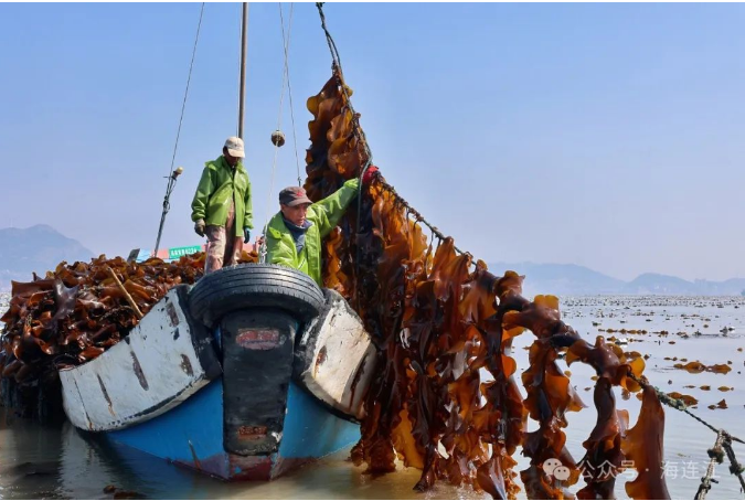 記者在連江海邊看到,成噸的新鮮海帶上岸裝車后,即刻運往加工廠進行深加工。經過燙煮、脫水、鹽漬、絞絲等多道工序,這些海帶變身為即食海帶結、速干海帶、海帶酥等高附加值產品,不僅銷往全國各地市場,還成功打入海外市場。