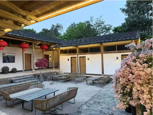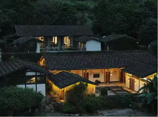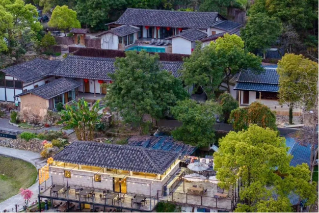 “這些夯土墻的肌理,記錄著歲月的痕跡。”建筑設計專業出身的林情,傾心于畬族古厝改造——既保留木構梁架、夯土墻面等特色,又融入落地窗、無邊際泳池等現代設施。