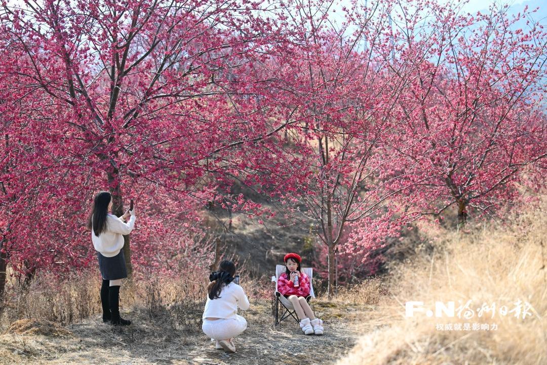 近期,閩侯大湖新塘村的櫻花迎來盛花期。步入櫻花林,一朵朵小金鐘狀的花朵開滿枝頭,層層疊疊、連綿起伏,一簇簇、一叢叢,匯聚成花的海洋。